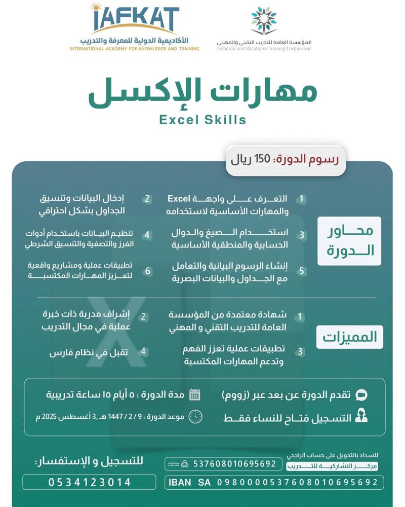 📩 احجزي مقعدك الآن وابدئي رحلتك نحو التميز في Excel!